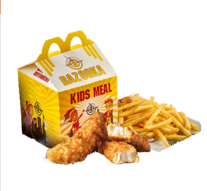 وجبة بازوكا للأطفال -استربس (2) + فرايز + قطعة خبز +للعبه اطفال + مشروب